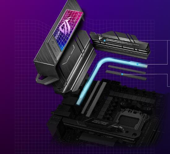 - Μια ψύκτρα M.2 με σωλήνα θερμότητας άμεσης επαφής παρέχει άφθονη επιφάνεια, επιτρέποντας βέλτιστες θερμοκρασίες λειτουργίας για τους δίσκους PCIe 5.0 M.2, ακόμη και όταν η ροή αέρα είναι περιορισμένη.