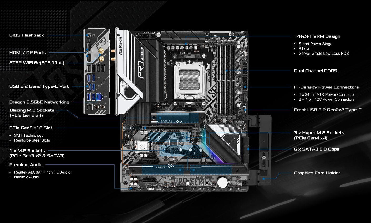 - 4 x DDR5 DIMMs, υποστηρίζει έως 6600+(OC)